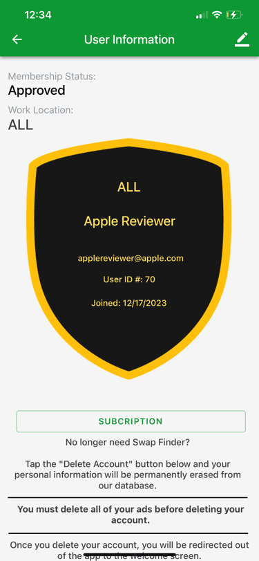 Upon completion of the verification process, the photo image submitted by the prospective member is destroyed, and the then approved member can access Swap Finder's ad viewing and posting service.