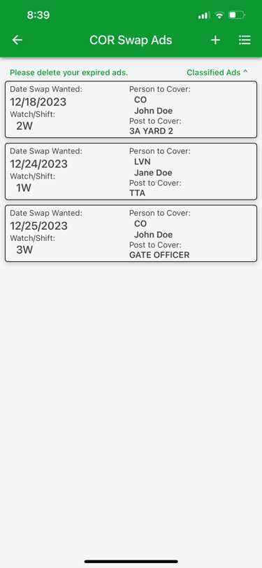 Swap Finder was designed to "keep it simple." Just tap on your work location to view all posted Swap Ads.