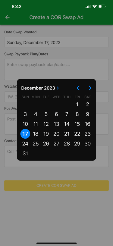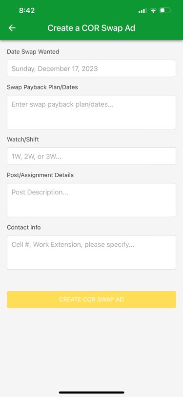 To post your own Swap Ad, hit the + symbol and provide the details, then tap the submit your Swap Ad button.